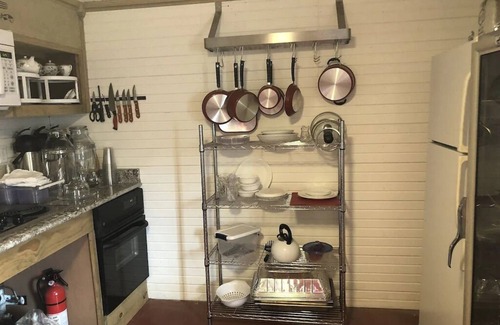 Ever wanted to stay in a barn loft? Don't think hay bails, critters, and dust, think comfort, relaxation, and solitude. This one queen one bath loft has a full kitchen below it and a large fire pit out in front of the barn. There is wifi, and direct TV, as well as good fishing and walking trails. It is a unique little place with a lot of charm...why stay in a hotel when you can stay in a loft, in a barn on, on a cattle ranch, on your getaway stay.