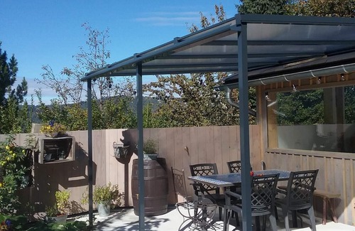 You also have a large terrace (100 m2); partly covered and a shady shelter with garden furniture, barbecue ... (possibility to put the motorcycles of travelers under this shelter). Depending on the season, you can enjoy vegetables or fruits from the orchard! :-)