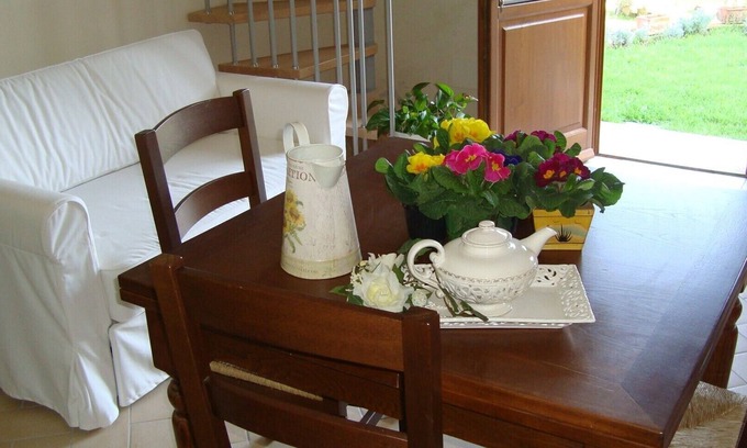 IL FIENILE DI PENELOPE is a typical Tuscan farmhouse on two levels recently renovated. Kitchen / living room with sofa bed, double bedroom + single bed, bathroom with shower box. Equipped kitchen. Bed linen and towels provided, satellite TV. WIFI. Ideal for lovers of relaxation and nature. Garden equipped with deck chairs, umbrella, tables, chairs and barbecue. Small prefabricated swimming pool above ground 5m x5mx1.3h.