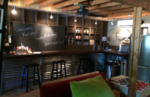 You won't be disappointed. This is truly a unique space that you're sure to enjoy. It is a great space where you can unwind and relax. Enjoy a movie or game on the big screen TV, grab a book, play a game, put together a puzzle and much, much more. There is a full kitchen along with the necessary utensils to cook up some great meals. There are also grills outside and some tables so you can enjoy an outdoor meal if you like. If you're here on business, The Barn has it's on WIFI and has a great work surface for getting your work done in an incredible setting.