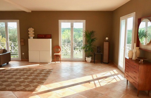 Large country house type with large pool. Environment of vineyards and scrubland. Exceptional view of Pic Saint Loup. 15 minutes from Sommières (medieval city). Near Camargue, Cévennes. Beaches.