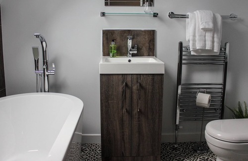The superb bathroom with complimentary toiletries provides guests with the option for an invigorating shower or a relaxing soak in our beautiful stand-alone bath.