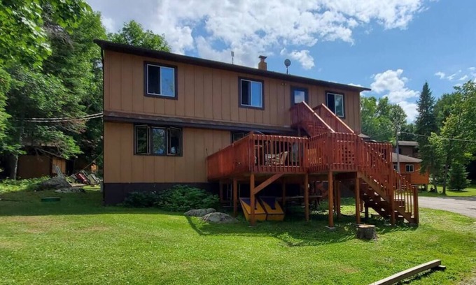 The 1st floor bedroom has a queen bed, and the other upper level rooms include a king room, a room with one queen bed, two bedrooms with two twins each, and a bedroom with three bunk-beds. Come enjoy the largest and most spacious rental option in the Voyageurs National Park area.