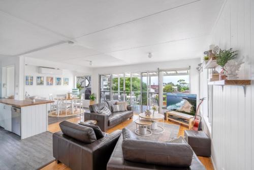 The Beach Box offers accommodations in Manyana, 21 miles from Mollymook Golf Club. Free Wifi is available throughout the property and Manyana Beach is a 4-minute walk away. Providing access to a balcony, the air-conditioned vacation home consists of 4 bedrooms. A TV is available. The accommodation is non-smoking. Moruya Airport is 69 miles from the property.