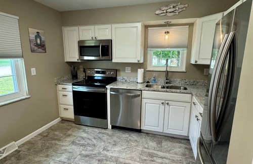 "Beautiful newly renovated ranch home with lots of extras, located in Wilmington, Ohio. Close to WEC (2.8 Miles). This two bedroom home sleeps four. Fully stocked kitchen, coffee bar, Smart TV's with Spectrum cable in Living Room and both bedrooms. Wifi available. Washer and dryer. Patio table and 4 chairs with a gas grill for your outdoor cooking needs. For us to maintain a consistency of high standards, we own, manage, and clean all our vacation rentals. We go above and beyond to provide you with additional amenities to ease the burden of traveling. We provide the following items for your stay; Toilet paper (4 rolls), paper towels (2 rolls), laundry soap, dryer sheets, dish soap, hand soap, trash bags, coffee, creamer, sugar, sweet & low, linens, extra pillows and blankets, hangers, first aid kits, shampoo, and body soap. We either personally check you in or we stage the unit for your arrival with lights on and ask that you contact us so that we know you have arrived safely. We own and manage the entire cul-de-sac, which includes 3 additional vacation rentals (The Tranquility, The Farmhouse, and the Equestrian), as well as 11 long term rentals with great tenants. Our location to the World Equestrian Center is 2.8 miles, with a quick 5 min drive for your convenience. We live 5 min from the property and are available if you should need anything during your stay. We take pride in our properties and hope that you enjoy your stay and will book with us again at one of 6 properties.