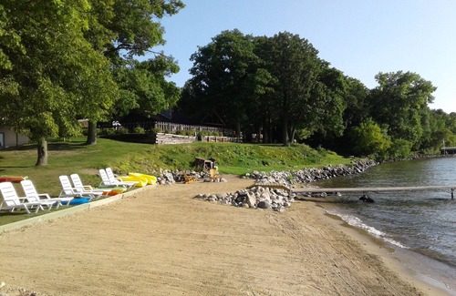- Lakefront retreat on Island Lake. Two cabins, 7 bedrooms, sand beach, privacy+