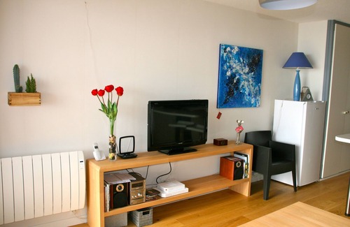 Fully renovated apartment has been totally equipped and furnished since 2010. We have thought of your comfort, and the decoration is contemporary and fancy with Philippe Starck armchairs. There is a high-quality double sofa bed (160 cm) in the living (17-cm mattress). The 2 beds in the bedroom can be joined together to make a 160-cm bed. - A Corian counter top (solid and easy maintenance, - Bosch appliances. The strengths of this holiday house are its proximity to the beach (just the street) and its 8-sq.m terrace. Ou goal is to allow you look at the sea and listen to the waves at any time. The apartment is ideal for a couple with three children. Individually owned listing.