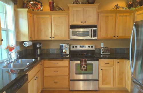 Our home features three bedrooms and two full baths. It's beautifully decorated, very clean and has everything you need for a spectacular vacation. The master suite includes a comfortable Tempurpedic bed with black-out curtains and the kid's themed guest bedroom is perfect for sleeping, watching movies and playing games. The kitchen is fully equipped to prepare gourmet meals with a new gas barbeque on the back patio. This house features all the upgrades with hardwood floors, granite and tile throughout. Enjoy a relaxing evening after a fun day of adventure in the large private hot tub or sit back and enjoy a movie from our extensive collection. (All the bedrooms have a TV.)