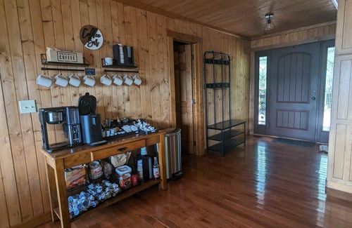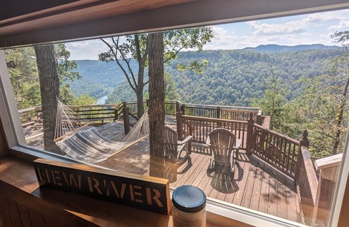 The house is located on top of a mountainside overlooking the New River Gorge National Park. Though it feels remote, it is still only minutes away from National Park attractions and downtown Fayetteville life.