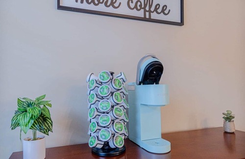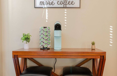 Enjoy a fully stocked kitchen with modern appliances including an air fryer, microwave, dishwasher, and a convenient K-cup coffee machine to jumpstart your mornings. Share meals in the dedicated dining area, then unwind in the cozy living room with a 65” Smart TV and PlayStation system—great for movie nights or gaming sessions.