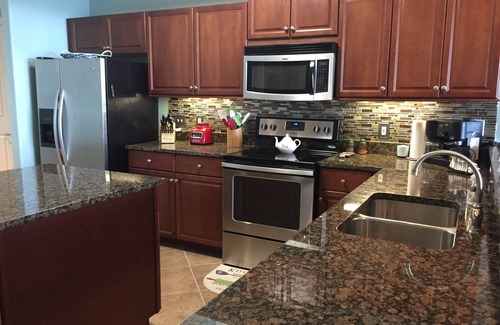 Guest Bedroom 2 includes: a queen bed and a flat screen TV. Guest Bedroom 3 includes: a queen bed, bunk bed with XL twin memory foam mattress that easily accommodates adults and a flat screen TV. High quality linens and blankets are provided for both bedrooms. Bathroom 2 has double sinks, granite counter tops and a private tub/shower combo and toilet.