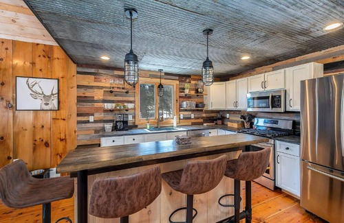 Our cozy cabin, across from the Trail's End Steakhouse & Tavern, has direct access to ATV trails. Pet- and family-friendly offering games, dog gates, pak-n-play, high chair and laundry - we welcome your group to enjoy the serene mountain surroundings.