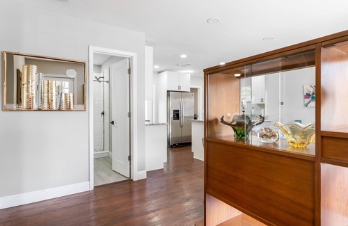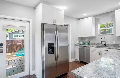 You'll get the Best of Both Worlds, being 15 minutes from the Gulf of Mexico, and 15 minutes from the Tampa Bay. Enjoy a stylish experience at this centrally-located home. This newly remodeled 2 bedroom/2 bathroom modern home hosts an open floor plan. The kitchen is also remodeled and stocked with serving dishes, blender, coffee maker, and all sorts of spices for cooking. Enjoy sleeping in, with the black out blinds that are in both bedrooms. The Primary bedroom has a queen bed with an attached bathroom with a tub. The second bedroom has a queen bed. The 2nd bathroom was recently remodeled with at walk in shower. There's a new washer and dryer on site in a separate laundry room. There's two beach cruisers to use. Go for a ride to Pinellas trail, where a short 35 minute bike ride can take you to the beach.
