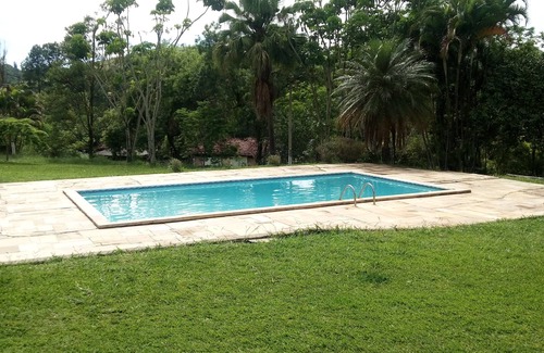 Room with 6 large comfortable, 3 bathrooms sleeps up to 30 people, we have no problem with noise, large green area with swimming pool, barbecue and soccer field, lake for sport fishing, cable TV, kitchen with utensils, flat terrain, only 4 km from the city center. Great place to forget the hustle and bustle of the city. We play for parties and events too.