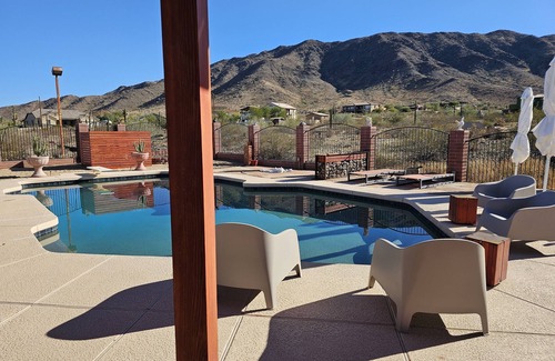 You'll stay in our newly remodeled, private 2nd-floor apartment. Sip your morning coffee on the 1,200-square-foot private deck looking out over the beautiful desert mountain as the sun rises. Sighting of bunnies, jackrabbits, coyotes, road runners, javelinas, dust devils, and even tumbleweeds rolling by is a widespread experience here. Enjoy the secluded pool area with jaw-dropping uninterrupted views of South Mountain. It's big enough to get your laps in or just right to soak up the sun and enjoy your favorite refreshments. Take it back to the deck to master your grilling on the 13-foot outdoor kitchen island. Savor your dinner while the city lights up your view as you watch from your front-row seats to what's considered the most striking and serene sunsets in the country.