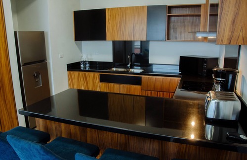 A fully modern 2 bedroom apartment. Enjoy an evening of relaxation in the balcony with the panoramic view of Ensenada Harbor, bay and downtown. Has a full kitchen, with everything you need for cooking. Walking distance to a variety of excellent the restaurants, entertainment and a close drive to Valle de Guadalupe. Very well secured gated area. The decoration is clean and contemporary. We'll make you feel at home