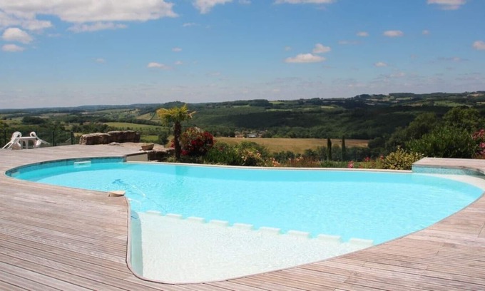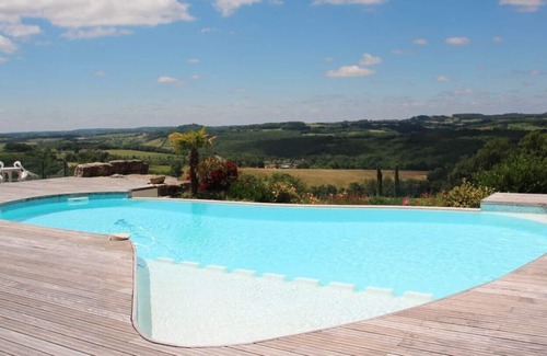 THE LARGE HOUSE: In an authentic, calm and sunny region, beautiful set of 2 houses, a rustic and a recent one on a plot of 1ha, breathtaking views of the valley, large heated infinity pool, solar shower, 2 yards, grounds for volleyball and pétanque, table tennis, barbecue, piano, billiards, wifi, 4 bathrooms, 5 wc, summer kitchen and winter kitchen, comfortable 2/18 people.