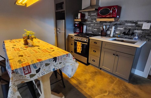 If you're looking for a great place to stay while enjoying Windrock Park, you have found your home away from home. The Big Red Barn was converted into a lodge that offers 1-to-3-bedroom units. Unit #6 is one of the newly completed 2 bedroom units offering 1 queen and 1 full size bed, all bedding linens included, open concept family room w/ sectional couch, coffee table and smart tv w/ Wi-Fi, breakfast table that seats 4, full kitchen with frig/freezer, gas range, microwave, coffee maker along with toaster, blender and all pots, pans and cookware needed to prepare any meals. private full bath with rain head shower, towels included, covered parking for 2 SXS's. The campground also includes a stocked catch and release fishing pond, just bring a pole. Located within 150 yards to trail G-23 and offer plenty of trailer parking. During the day enjoy the beautiful views of the private pond and surrounding mountain range, at night star gaze next to a campfire. Visit Indian Creek Camp and Ride to see what you've been missing.