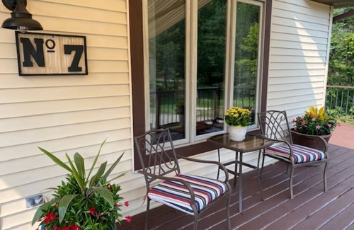 This spacious year-round home has a wrap-around deck, warm beautiful hardwood floors throughout the main level. Two large bedrooms upstairs with Queen bed & (2) Double beds, 2 full bathrooms, laundry, & queen sofa sleeper in living room.