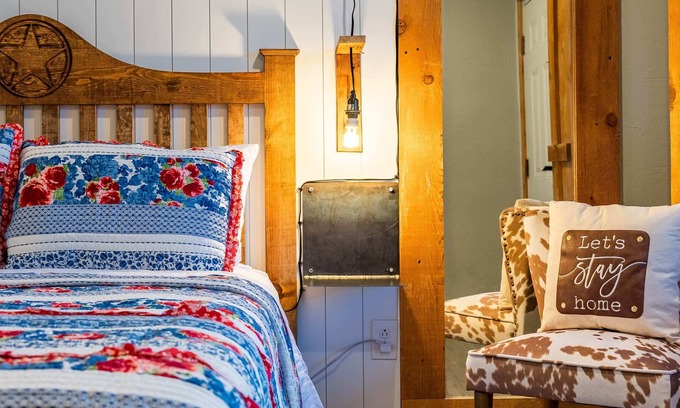 The Big Texan Airbnb is a picture worthy saloon style motel turned Airbnb. We created the room so that you have your very own coffee bar, two amazing queen beds, and plenty of space for you and your family.