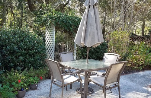 An Acre and a Half of Park-like grounds. Tucked into the pines on a dead end road, which borders protected the land of one of the Lowcountry's oldest plantations. Private, Quiet, and Beautiful. CHOOSE YOUR BED TYPE: Firm (Mattress with Linens), Moderate: (Mattress with Memory Foam Topper and Linens) Soft: (Mattress with Memory Foam Topper, plus Feather Bed and Linens) .