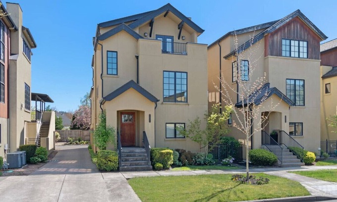 Welcome to the Birdhouse–a modern luxury retreat with an artsy twist! Nestled in a prime Eugene locale, this 3-bedroom 2.5-bath home is a haven for comfort and style. Enjoy scenic views from the beautiful patio, ideal for sun-soaked relaxation or alfresco dining. Walk to delicious eateries and reach downtown and U of O campus within minutes. Indulge in creature comforts like smart TVs, fully stocked kitchen, and master bath with a luxurious soaker tub. Your perfect nest awaits at the Birdhouse!