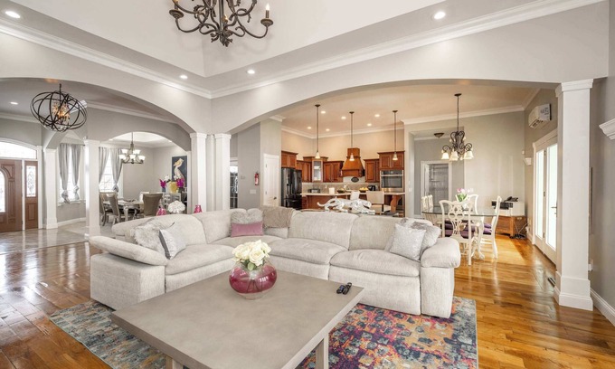 This stunning home in West Chester, Ohio, offers the perfect blend of relaxation, entertainment, and convenience. Located just minutes from Liberty Center’s top-tier shopping and dining, the scenic trails of Voice of America MetroPark, and a short drive to Cincinnati’s vibrant attractions, The Bishops Manor places you in the heart of it all. Whether you're planning a family getaway, a friends' retreat, or a relaxing escape, you’ll experience ultimate luxury at The Bishops Manor.