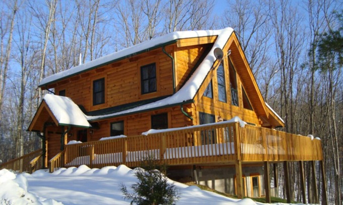 4 bedrooms (one on the main floor), 3 baths, lots of windows, Jacuzzi tub in main bathroom, cathedral ceilings, central air and heat, fully equipped kitchen, authentic log furniture.