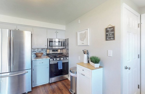 Step into a light-filled living room that invites you to unwind, then flow seamlessly into the fully equipped chef’s kitchen and dining area. Prepare delicious meals with ease thanks to high-end appliances, including a full-size refrigerator, gas stove and oven, microwave, dishwasher, and a well-stocked pantry. Thoughtfully curated cookware—ranging from baking dishes to a full set of pots and skillets—along with a drip coffee maker, electric tea kettle, and toaster, ensure you have everything you need for morning rituals and evening gatherings.
