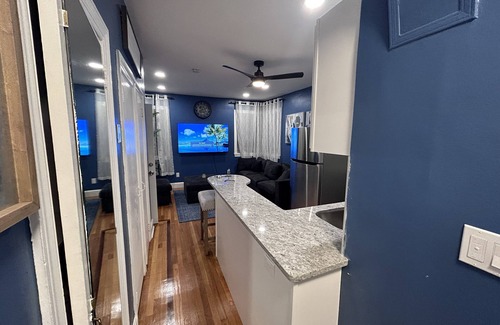 This is a recently renovated one bedroom apartment with brand new furniture and nice mattress for your comfort. Has a full kitchen with all utensils to prepare any meals. 65 inch smart tv , will keep the connection with your streaming apps.