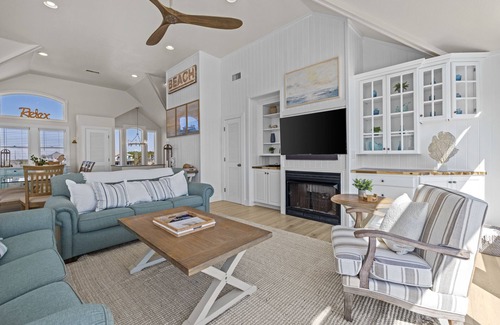 There are several decks off the home - three facing the sand dune and ocean off the back of the home, where you can relax in one of the many chairs, while listening to the waves or watching the kids play in the private pool. The 7-person hot tub is situated near the pool, so that you and your family can relax in the cool pool or the hot tub, while keeping sight of everyone. You can also relax in the hot tub and star-gaze at night. Pro-tip – turn off all the lights in the house to experience pure serenity from the hot tub under the moon and stars!