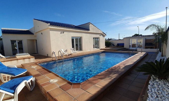 In a residential area, close to all amenities (supermarket 150m, bars, ...) Villa on one level, very well exposed to calm, pool bar with summer kitchen, and beer pump for a surcharge for beer was! , safe, 8 chairs, barbecue, plancha, net volley beach, game of bowls.