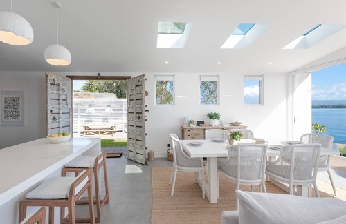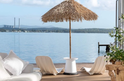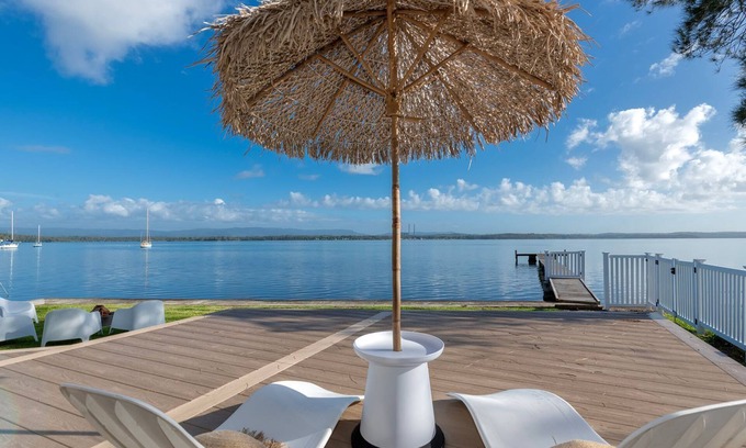 Welcome to The Boathouse - a stunning absolute-waterfront escape that blends luxe Hampton’s elegance with laid-back lakeside vibes. Designed for two, this dreamy retreat sits right on the edge of Lake Macquarie, complete with a private jetty, shared boat ramp, full Smeg kitchen, wet bar, and an expansive deck made for slow mornings or sunset cocktails. From the moment you arrive, The Boathouse invites you to unwind, breathe deep, and indulge in effortless luxury. Designed with your privacy in mind, it has a discrete and private entrance via a stepping stone pathway that leads down to the waterfront, along with private gated access to the waterfront reserve.