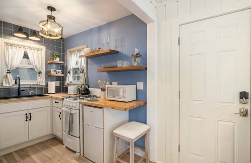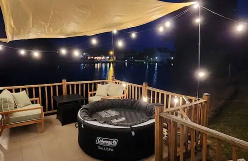This waterfront tiny home escape is 100% renovated and perfect for your special occasion, romantic getaway or retreat! Curated with luxury in mind and surprises throughout - from the kitchen to the bathroom! Fully-equipped kitchen with an array of coffee and tea options, a luxuriously comfortable bed, giant cuddle chairs, chromatherapy jetted tub, fireplace and shower with Bluetooth audio! Private deck, kayaks, fire table and all-season hot tub are perfect for enjoying this special space!