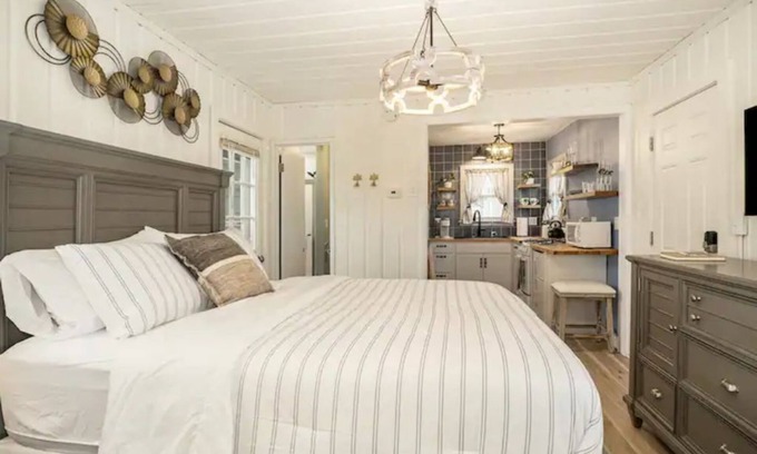 Perched atop the water as you look out from the Boathouse, this tiny home is 425 ft and has a cozy cottage feel with high-end amenities throughout! A perfect place for a romantic getaway or relaxing break from everyday life.