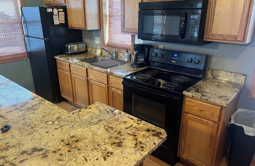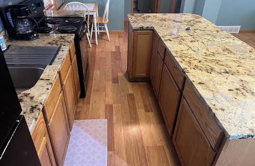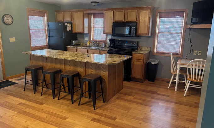 The Bohemian Bungalow is located just off the Main Street in beautiful Verdigre, NE. Enjoy the quiet setting with a fenced in lot, large wrap around deck with Eating area and grills. The house offers a beautiful full kitchen with an island for eating or entertaining.