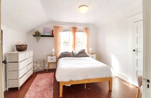 The house features a tastefully furnished bedroom. It offers high comfort and convenience to relax and rest after a memorable day of adventuring throughout the gorgeous city of Cincinnati.