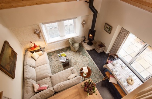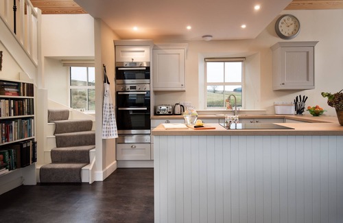 The Bothy itself has been sensitively and thoughtfully restored: large south-facing windows and bifold doors to the garden capitalise on the light and sweeping countryside views; ancient, rough-hewn stone walls are painted in fresh white; underfloor heating on the ground floor is complemented by a cosy wood-burning fire in the double-height sitting room; and a ground floor level en-suite bedroom is ideal for families (with adjoining bunk room) or for those guests with limited mobility.