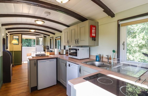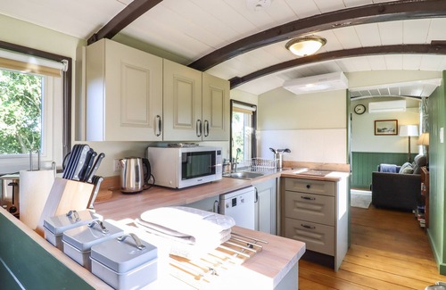 The living areas in this single-storey property consist of a kitchen/diner with an electric hob, microwave, fridge/freezer, and dishwasher, and a sitting room with TV, a selection of books, and a balcony with furniture. There is also a double bedroom and a shower room. Outside there is a shared wrap-around lawn, a private decked area with furniture, and off-road parking for one car. This is a pet-free and smoke-free property. Fuel, power, bed linen and towels are all included in the price. You'll find a shop in 1.6 miles and a pub in 2.1 miles. The Brake Wagon at High Barn Heritage is a wonderful base for a romantic break to Essex. Note: This is an adult only property. Note: There are a flight of steps, with handrail to both the front and rear of the property. Note: The garden is not enclosed.