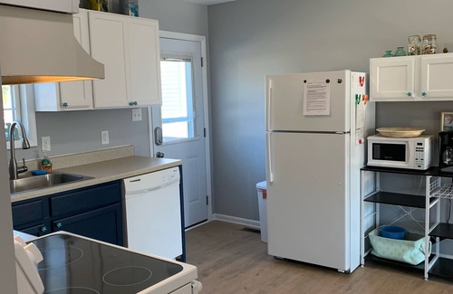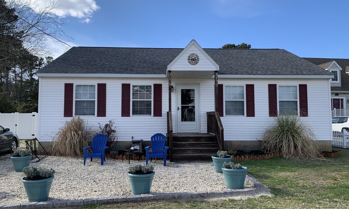 This charming rancher is ready to welcome you and your family. Come make memories in the cozy and relaxing space. Enjoy this redone home on large lot perfect for family games of kickball and tag after a fun day at the beach. This home sleeps 8-9 folks comfortably. It has a stocked kitchen, a dining area and living room with 4 bedrooms and 2 full bathrooms. There is an outdoor shower and foot rinse (April-November). Just added for Fall 2024: Disc Golf unit for the backyard and 8 new outdoor chairs.