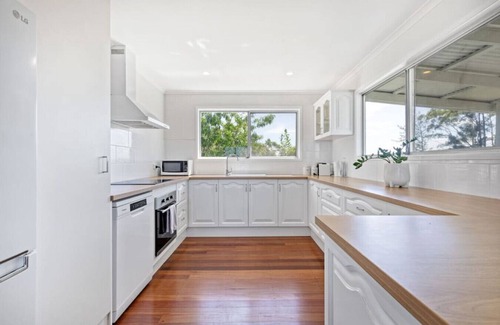 This beautifully styled home has a fully equipped kitchen, and an integrated dining and living space which open onto a balcony with outdoor dining and views of the Hinterland and Coast.
