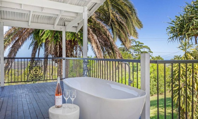 The Breezy Maple is a beautifully renovated, stylish holiday home that has sweeping views and overlooks the coast and hinterland. Perfect for family getaways or a gathering of friends, this property offers the ideal base from which to experience the natural beauty of Mapleton and the Blackall Ranges, or to explore Montville, Maleny and the surrounding Sunshine Coast Hinterland. Alternatively stay put, lay back and relax in the outdoor bath or gather around the sculpted outdoor fire pit.