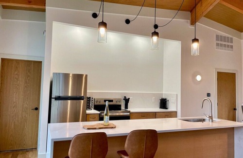 Perfect for a romantic getaway, The Briar House features an expansive open-concept layout with luxurious finishes throughout. Enjoy a full kitchen with a large island, a cozy yet refined living area, and a king-sized primary suite with an ensuite bathroom.