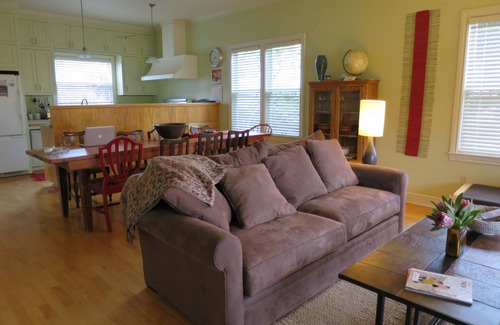 This is a great retreat for a family vacation, romantic weekend, or fun with friends. Located just seven miles from the village of Mendocino, the Bridge House is close to beaches, kayaking, hiking, biking, horseback riding, and much more. The Mendocino coast offers myriad activities for young, old and those in between! A short walk from the Albion store, which stocks fine wines, deli items, and just about anything you could possibly need, the house is also just a short walk from fine dining at the Ledford House. The Albion River Inn & Restaurant is just over the bridge.