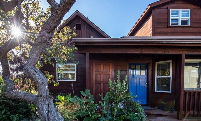 The Bridge House was built in 1908 and functioned originally as Newgard's Store on old Highway One, which ran down to and across the Albion River. Beautifully expanded and restored in 2001, and updated in 2015, the home boasts redwood construction, wainscoting, a 10-foot ceiling in the living/kitchen area, two bedrooms, a back parlor, two bathrooms and full kitchen. It is surrounded by lush gardens brimming with coast-loving plants in bloom throughout the seasons.