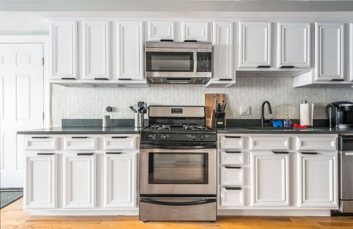 The home includes a fully stocked kitchen, free parking spot (small and medium size cars and SUVs only, not large vehicles), in unit washer & dryer, queen-size bed, and couch with queen-size memory foam mattress.