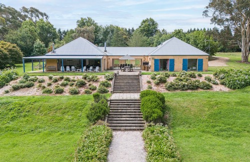Entering through rustic gates and driving down the gently curving clay driveway leads you to the Lakehouse' substantial accommodation. Inspired by traditional European architecture, the farmhouse has 2 distinct wings with high roof pitches connected by a stunning glassed walkway which acts as the main dining hall. With 4 bedrooms, 2 bathrooms, multiple living/ seating areas, a rumpus room and wrap around verandah the house is perfect for 2 families to share. A second TV in the rumpus room adjoining the garage with table tennis and foosball tables ensures that the parents can enjoy the main lounge and dining wing of the house and the kids have their own area.