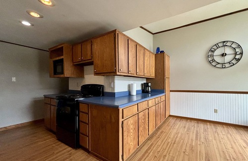 This property does include stairs from the living room up into the kitchen and may be difficult to navigate for mobility challenged visitors.