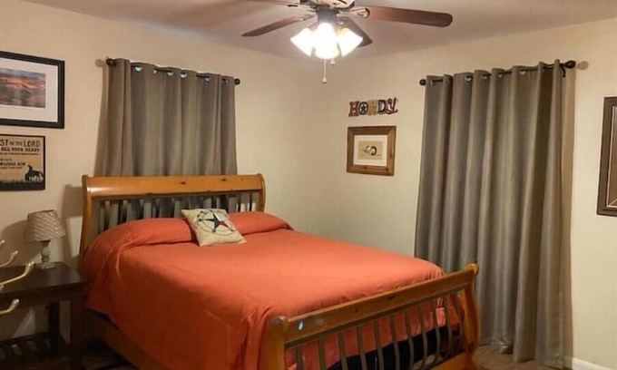 Welcome to our bunkhouse! We enjoy offering a clean comfortable space to our guests. Easy access to the highway, free parking, and wifi. We are located on 7 acres and enjoy raising our backyard chickens. Enjoy the outdoors on our walking trail to a small pond. There is one queen size bed and a bunkbed. The bunk has a twin size bed and a large toddler size bed on the bottom. This is our private guest suite with its own entrance and space but is part of a house so there are shared walls.