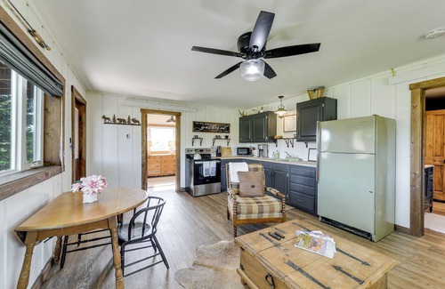 Unwind in this 2-bedroom, 1-bathroom vacation rental nestled in the serene landscapes of Bondurant, WY. Offering unparalleled mountain views, this cabin is a true sanctuary for outdoor enthusiasts. After a day of hiking with your furry friend, biking the on-site trails, return home to kick up your feet on the deck while you enjoy the views, or head inside and whip up a home-cooked meal in the well-equipped kitchen. Relaxation starts here!